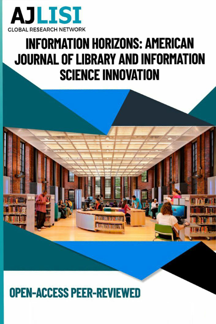 Information Horizons: American Journal of Library and Information Science Innovation (2993-2777) - a peer-reviewed, open-access journal that provides rapid publication (monthly) of articles in all areas of innovative science-related disciplines. The objective of this journal is to provide a veritable platform for scientists and researchers all over the world to promote, share, and discuss a variety of innovative ideas and developments in all aspects of library and Information Science. The Journal welcomes the submission of manuscripts that meet the general criteria of significance and scientific excellence. Papers will be published shortly after acceptance. The Information Horizons: American Journal of Library and Information Science Innovation is published monthly one volume per year. All articles published in AJLISI are peer-reviewed.